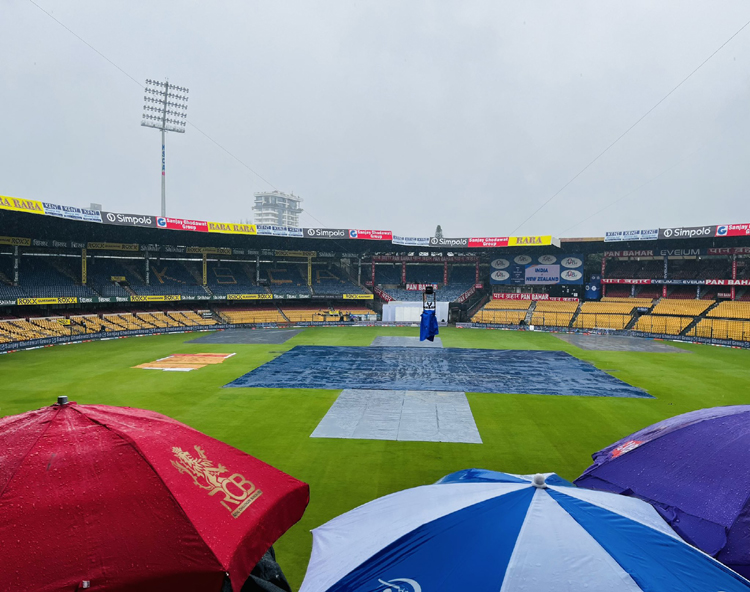 ಬೆಂಗಳೂರು: ಚಿನ್ನಸ್ವಾಮಿ ಮೈದಾನದಲ್ಲಿ ನಡೆಯುತ್ತಿರುವ ಭಾರತ ಮತ್ತು ನ್ಯೂಜಿಲೆಂಡ್ ನಡುವಿನ ಮೊದಲ ಟೆಸ್ಟ್ ಪಂದ್ಯ ಕುತೂಹಲಕಾರೀ ಘಟ್ಟದಲ್ಲಿರುವಾಗ ಮಳೆ ಸುರಿದಿದೆ. ಇದರಿಂದ ಟೀಂ ಇಂಡಿಯಾಕ್ಕೆ ಲಾಭವಾಗುವುದೋ, ನಷ್ಟವಾಗಬಹುದೋ ಇಲ್ಲಿದೆ ಲೆಕ್ಕಾಚಾರ.