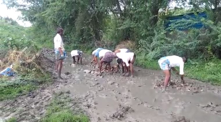 ಗ್ರಾಮಸ್ಥರಿಂದ ಸ್ವಂತ ಹಣದಿಂದ ರಸ್ತೆ ರಿಪೇರಿ