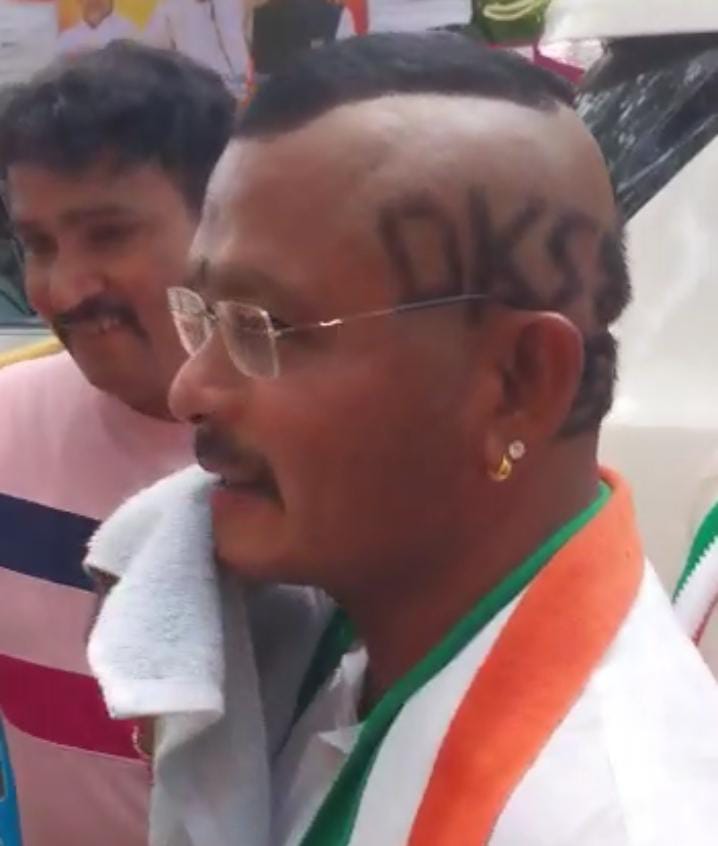 ವಿಶೇಷ ಕೇಶವಿನ್ಯಾಸ ಅಭಿಮಾನಿ ಮಾಡಿಸಿಕೊಂಡಿದ್ದು,ತಲೆಯ ಮೇಕೆ ಹಸ್ತದ ಗುರತು, ಕಾಂಗ್ರೆಸ್, ಸಿದ್ದು ,ಖರ್ಗೆ ಎಂದು ವಿನ್ಯಾಸ ಮಾಡಿಸಿಕೊಂಡಿದ್ದಾರೆ.ಯಶವಂತಪುರ ದ ನಿವಾಸಿ ರಮಾ ಕೃಷ್ಣ ವಿಶೇಷ ಕೇಶ ವಿನ್ಯಾಸ ಮಾಡಿಸಿಕೊಂಡಿರುವ ಅಭಿಮಾನಿಯಾಗಿದ್ದಾರೆ.ಕಳೆದ 26 ದಿನಗಳ ಹಿಂದೆ ಹೇರ್ ಸ್ಟೈಲ್ ಮಾಡಿಸಿಕೊಂಡಿದ್ದಾರೆ.