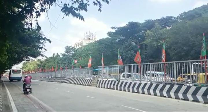 ನಾಳೆ ಪ್ರಧಾನಿ ನರೇಂದ್ರ ಮೋದಿ ಬರುವುದರಿಂದ ನಗರದ ರಸ್ತೆ ಗುಂಡಿಗಳನ್ನ ಮುಚ್ಚುವ ಕೆಲಸ ಪಾಲಿಕೆ ಮಾಡ್ತಿದೆ.ಅಲ್ಲದೇ ನಗರದಲ್ಲಿ ಮೋದಿ ಬರುವ ಹಿನ್ನೆಲೆ ಬರದ ಸಿದ್ಧತೆ ಮಾಡಿಕೊಳ್ಳಲಾಗಿದೆ.ಇನ್ನೂ ನಗರದ ಬಹುತೇಕ ರಸ್ತೆಗಳಲ್ಲಿ ಈಗಾಗಲೇ ಎಲ್ಲೆಲ್ಲೂ ಕೇಸರಿ ಬಾವುಟ ಹಾರಾಟವಾಡ್ತಿದೆ.ಪ್ರತಿ ರಸ್ತೆ ಉದ್ದಗಲಕ್ಕೂ ಕೇಸರಿ ಬಾವುಟ ಹಾರಾಟವಾಡ್ತಿದ್ದು,ನಗರದ ಕೆ ಆರ್ ವೃತ್ತದಿಂದ ಫ್ರೀಡಂ ಪಾರ್ಕ್ ವರೆಗೂ ಹೆಜ್ಜೆ ಹೆಜ್ಜೆಗೂ ಕೇಸರಿ ಬಾವುಟಗಳ ಹಾರಾಡುತ್ತಿದೆ.