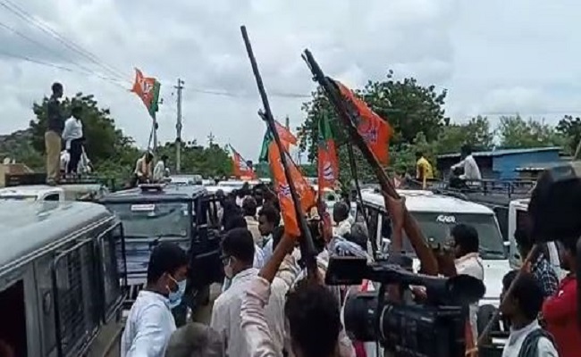 ಯಾದಗಿರಿ ತಾಲೂಕಿನ ಯರಗೋಳ ಗ್ರಾಮಕ್ಕೆ ಆಗಮಿಸಿದ ಕೇಂದ್ರ ಸಚಿವ ಭಗವಂತ ಖೂಬಾ ಕೇಂದ್ರ ಸಚಿವ ಭಗವಂತ ಖೂಬಾಗೆ ಯರಗೋಳ ಗ್ರಾಮದಲ್ಲಿ ಪೊಲೀಸರ ಮುಂದೆಯೇ ನಾಡಬಂದೂಕು ಕೈಯಲ್ಲಿ ಹಿಡಿದುಕೊಂಡು ಗಾಳಿಯಲ್ಲಿ ಗುಂಡು ಹಾರಿಸುವ ಮೂಲಕ ಸ್ವಾಗತಿಸಿ ಕಾರ್ಯಕರ್ತರು ಎಡವಟ್ಟು ಮಾಡಿಕೊಂಡಿದ್ದಾರೆ. ಇದೀಗ ಯಾದಗಿರಿ ಎಸ್ಪಿ ವೇದಮೂರ್ತಿ ಗಾಳಿಯಲ್ಲಿ ಗುಂಡು ಹಾರಿಸಿದವರ ವಿರುದ್ಧ ಪ್ರಕರಣ ದಾಖಲಿಸಲು ಪಿಲೀಸ್ ಅಧಿಕಾರಿಗಳಿಗೆ ಸೂಚನೆ ನೀಡಿದ್ದಾರೆ.