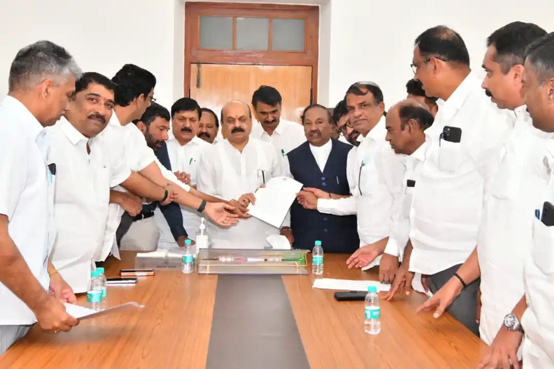ಬೆಂಗಳೂರು ನಗರದ ಸಿಎಂ ಗೃಹ ಕಚೇರಿ ಕೃಷ್ಣಾದಲ್ಲಿ ಸಿಎಂ ಬಸವರಾಜ ಬೊಮ್ಮಾಯಿ ಅವರನ್ನು ಜನಪ್ರತಿನಿಧಿಗಳ ನೇತೃತ್ವದ ನಿಯೋಗ ಭೇಟಿ ಮಾಡಿ ಮನವಿ ಸಲ್ಲಿಸಿದೆ. ಗೃಹ ಕಚೇರಿ ಕೃಷ್ಣಾಗೆ ಆಗಮಿಸಿದ ನಿಯೋಗ, ತಮ್ಮ ಪ್ರಮುಖ ಬೇಡಿಕೆಗಳನ್ನು ಈಡೇರಿಸುವಂತೆ ಒತ್ತಾಯಿಸಿ ಸಿಎಂ ಬೊಮ್ಮಾಯಿ ಅವರಿಗೆ ಮನವಿ ಸಲ್ಲಿಸಿದ್ದಾರೆ.