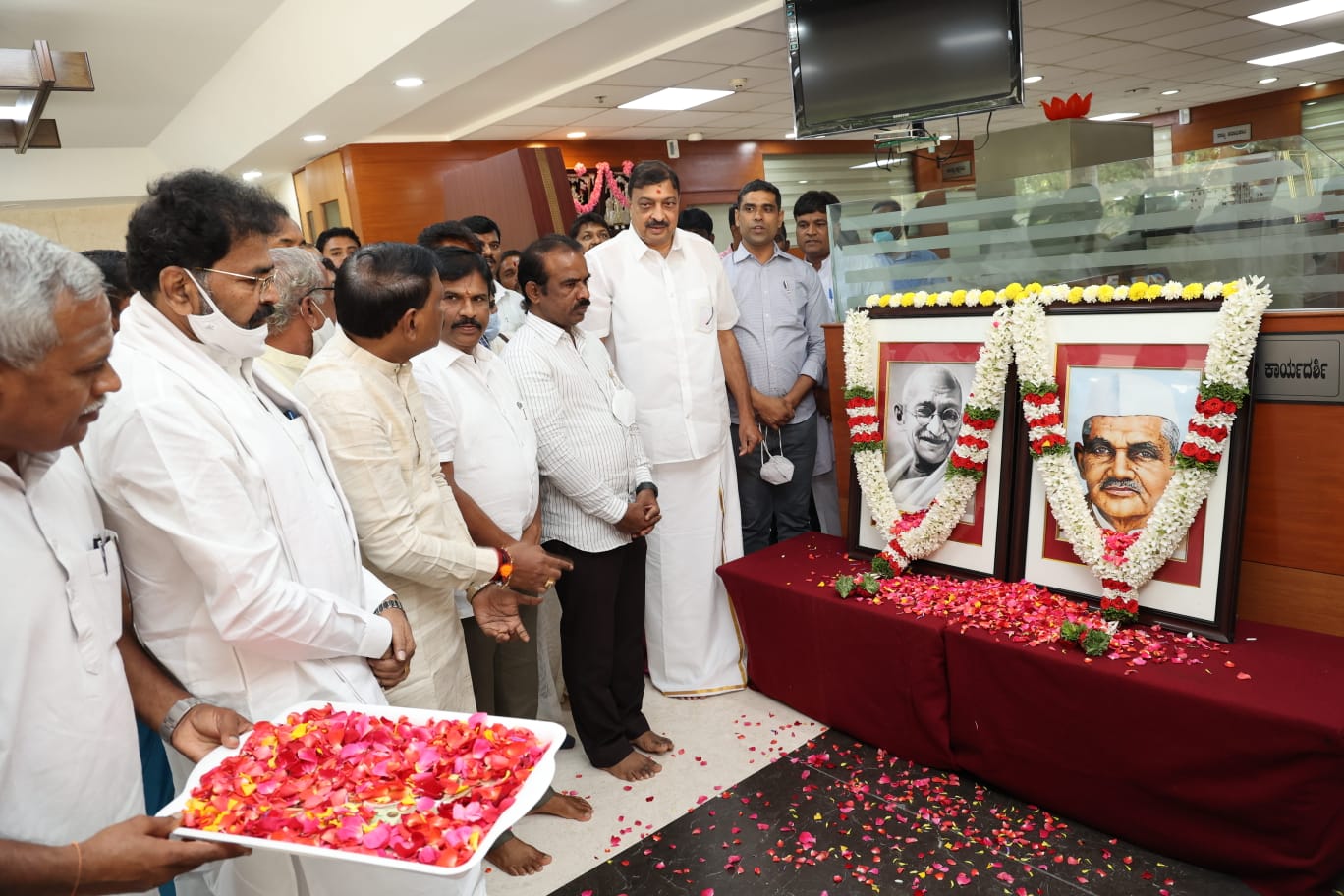 ಮಲ್ಲೇಶ್ವರದ ರಾಜ್ಯ ಬಿಜೆಪಿ ಕಾರ್ಯಾಲಯ ಜಗನ್ನಾಥ ಭವನದಲ್ಲಿ ಇಂದು ನಡೆದ ಮಹಾತ್ಮ ಗಾಂಧಿ ಜಯಂತಿ ಮತ್ತು ಲಾಲ್ ಬಹದ್ದೂರ್ ಶಾಸ್ತ್ರಿ ಅವರ ಜಯಂತಿ ಕಾರ್ಯಕ್ರಮದಲ್ಲಿ ರವಿಕುಮಾರ್ ಪ್ರಕಾರ.