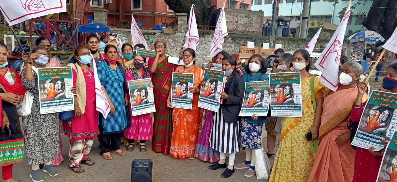 ಇಂದು ಸಂಜೆ 4.30ಕ್ಕೆ ಬೆಂಗಳೂರಿನ ಮೈಸೂರು ವೃತ್ತದಲ್ಲಿ ಅಖಿಲ ಭಾರತ ಜನವಾದಿ ಮಹಿಳಾ ಸಂಘಟನೆಯಿಂದ ಪ್ರತಿಭಟನೆಯನ್ನು ಮಾಡಲಾಯಿತು.