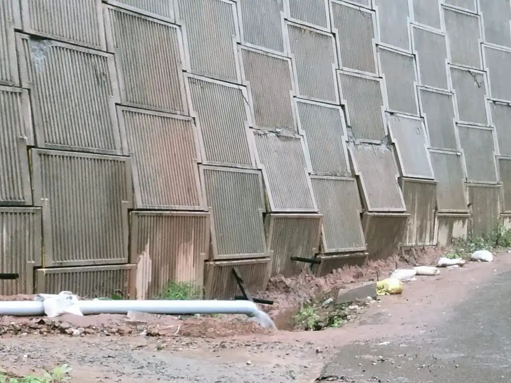 ಮಡಿಕೇರಿ- ಮಂಗಳೂರು ರಸ್ತೆಯಲ್ಲಿರುವ ಜಿಲ್ಲಾಧಿಕಾರಿ ಕಚೇರಿಯ ತಡೆಗೋಡೆಯ ಸ್ಲ್ಯಾಬ್ಗಳು ಹೊರಚಾಚಿದ್ದು, ಕಳಚಿ ಬೀಳುವ ಆತಂಕ ಮೂಡಿದೆ. ಹೀಗಾಗಿ, ವಾಹನ ಸಂಚಾರಕ್ಕೆ ಬದಲಿ ಮಾರ್ಗದ ವ್ಯವಸ್ಥೆ ಮಾಡಲಾಗಿದೆ.
