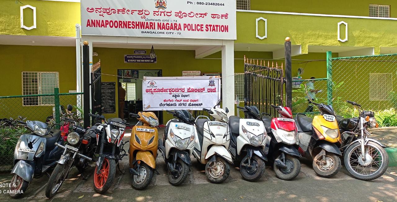 ಅ 13 ರಂದು ರಾತ್ರಿ 1 ಗಂಟೆಯ ಸಮಯದಲ್ಲಿ ಮನೆಯೊಂದರ ಮುಂದೆ ನಿಲ್ಲಿಸಲಾಗಿದೆ ಹೊಂಡಾ ಉಪಯೋಗಿಸುವ ಸ್ಕೂಟರ್ ಮಾರನೆ ದಿನ ಬೆಳಿಗ್ಗೆ 6 ಗಂಟೆಗೆ ನೋಡುವಷ್ಟರಲ್ಲಿ ಕಳ್ಳತನವಾಗಿತ್ತು. ಈ ಬಗ್ಗೆ ಸ್ಕೂಟರ್ ಮಾಲೀಕರು ಅನ್ನಪೂರ್ಣೇಶ್ವರಿನಗರ ಪೊಲೀಸ್ ಠಾಣೆಗೆ ದೂರು ನೀಡಿದ್ದರು. ಇನ್ಸ್ ಪೆಕ್ಟರ್ ಲೋಹಿತ್ ಮತ್ತು ಸಿಬ್ಬಂದಿ ಶೋಧ ಕೈಗೊಂಡು ಆರೋಪಿಯನ್ನು ಬಂಧಿಸಿ. ವಿಚಾರಣೆಗೊಳಪಡಿಸಲಾಗಿದೆ ಬೈಕ್ ಕಳ್ಳತನ ಮಾಡಿರುವುದನ್ನು ಒಪ್ಪಿಕೊಂಡಿದ್ದಾನೆ ಎಂದು ಕರೆಯಲಾಗುತ್ತದೆ.