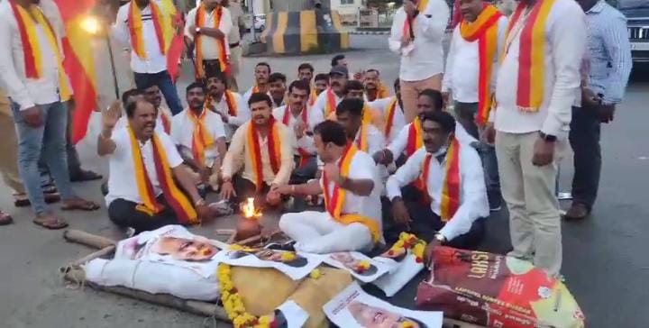 ನಗರದಲ್ಲಿ ಕಾವೇರಿ ಹೋರಾಟದ ಕಾವು ಹೆಚ್ಚಾಗಿದೆ.ಪ್ರತಿಭಟನಾಕಾರರು ಖಾಲಿ ಬಿಂದಿಗೆ ಹಿಡಿದು ರಸ್ತೆಗಿಳಿದ ಪ್ರತಿಭಟಿಸಿದ್ದಾರೆ.ಸರ್ಕಾರದ ವಿರುದ್ದ ದಿಕ್ಕಾರವನ್ನ ಕನ್ನಡ ಪರ ಸಂಘಟನೆಗಳು ಕೂಗುತ್ತಿದೆ.ರಸ್ತೆ ಗೆ ಇಳಿಯದಂತೆ ಸುತ್ತಲೂ ಪೊಲೀಸ್ ಸರ್ಪಗಾವಲಿನ ವ್ಯವಸ್ಥೆ ಮಾಡಲಾಗಿದೆ.ಮೈಸೂರು ರಸ್ತೆಯ ಗಾಳಿ ಆಂಜನೇಯ ರಸ್ತೆ ಬದಿ ಪ್ರತಿಭಟನಾಕರರು ನಿಂತು ಪ್ರೊಟೆಸ್ಟ್ ಮಾಡಿದ್ದಾರೆ.ನಿಲ್ಲಿಸಿ ನಿಲ್ಲಿಸಿ ಕೂಡಲೇ ನೀರು ನಿಲ್ಲಿಸಿ ಎಂದು ಆಕ್ರೋಶ ಹೊರಹಾಕಿದ್ದಾರೆ.