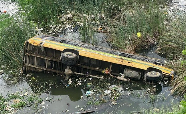 ಬೆಂಗಳೂರಿನಲ್ಲಿ 100 ಅಡಿ ಆಳದ ಹಳಕ್ಕೆ ಉರುಳಿದ ಸ್ಕೂಲ್ ಬಸ್!