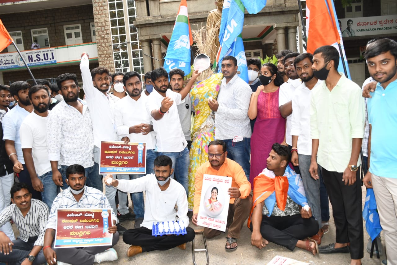 ಸಚಿವೆ ಶಶಿಕಲಾ ಜೊಲ್ಲೆ ವಿರುದ್ದ ಎನ್.ಎಸ್.ಯು.ಐ.ವಿದ್ಯಾರ್ಥಿ ಕಾಂಗ್ರೆಸ್ ವತಿಯಿಂದ ಪ್ರತಿಭಟನೆ