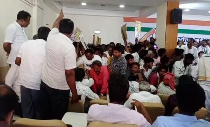 ಕೆಪಿಸಿಸಿ ಕಚೇರಿಯಲ್ಲಿ ಪಕ್ಷ ಸೇರ್ಪಡೆ ಕಾರ್ಯಕ್ರಮದಲ್ಲಿ ನೂಕುನುಗ್ಗಲು ಉಂಟಾಗಿದೆ.ಚಿಂತಾಮಣಿ, ಶಿಗ್ಗಾಂವಿ, ಕೆಆರ್ ಪೇಟೆ ನಾಯಕರ ಕೈ ಸೇರ್ಪಡೆ ಕಾರ್ಯಕ್ರಮವನ್ನ ಚಿಕ್ಕ ಹಾಲ್ ನಲ್ಲಿ ಕಾಂಗ್ರೆಸ್ ನಾಯಕರು ಅಯೋಜನೆ ಮಾಡಿದ್ರು.ಮೂರು ಕ್ಷೇತ್ರಗಳ ನಾಯಕರು ಕಾರ್ಯಕರ್ತರು ಏಕಕಾಲಕ್ಕೆ ನುಗ್ಗಿದ್ದಂರಿಂದ ನೂಕು ನುಗ್ಗಲು ಉಂಟಾಗಿದೆ.